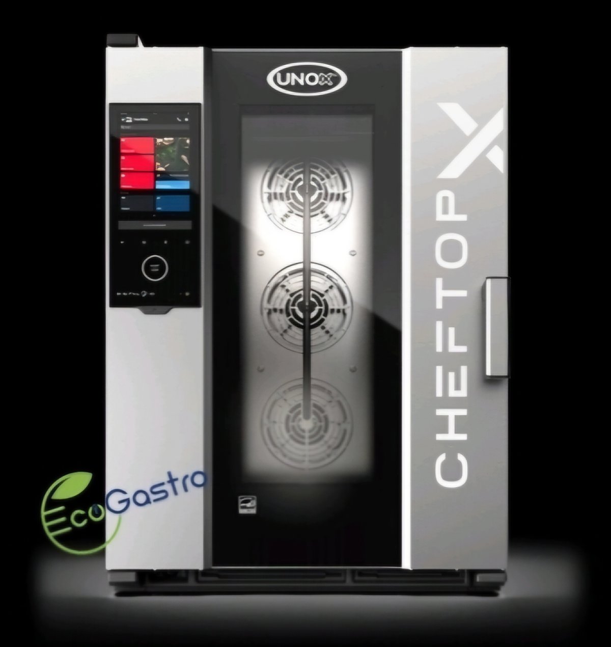 gaspillages, grâce également à son lavage automatique en circuit fermé. CHEFTOP-X™ est équipé d'une chambre de cuisson en acier inoxydable 316L et d'un système de filtration de l'eau RO.Care intégré qui évite le recours à des systèmes de filtration externes. Il est équipé d'un micro intégré qui permet de contrôler le four par commande vocale et interagir avec les Chefs d'entreprise UNOX pour une assistance à la cuisson directement depuis le panneau de contrôle. Le système d'exploitation technologiquement avancé Digital.ID™ vous permet de sauvegarder tous vos réglages préférés