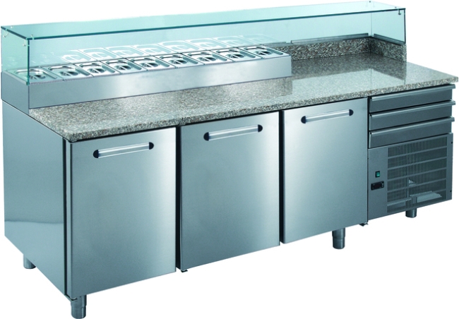 Table pizza 3 portes réfrigérées + 3 tiroirs neutres