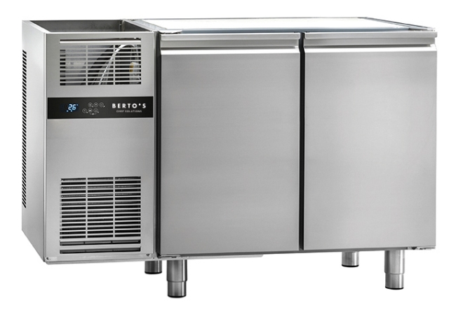 Table réfrigérée avec plan de travail en acier inoxydable AISI 304.