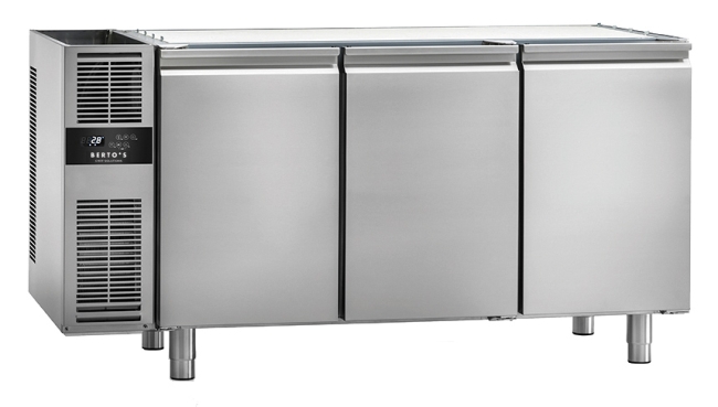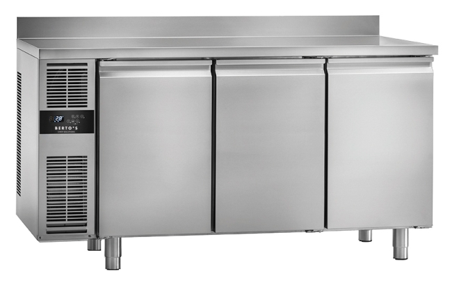 Table réfrigérée avec plan de travail en acier inoxydable AISI 304.